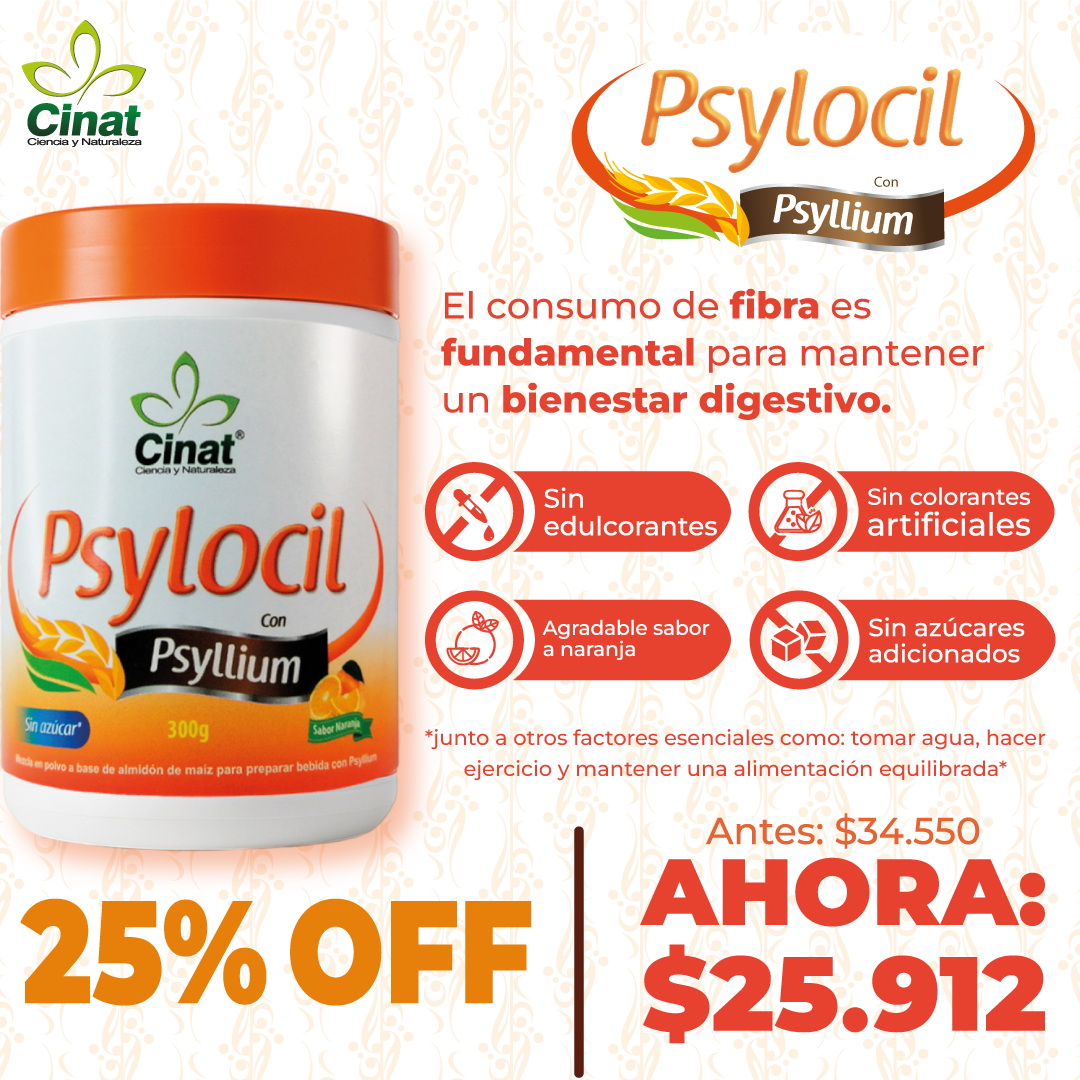 PSYLOCIL es una mezcla en polvo con base Psyllium y un aditivo soluble, con un delicioso sabor. El Psyllium, componente del PSYLOCIL, se encuentra en la cáscara de las semillas de un género de plantas de la familia plantaginácea y es usado como fuente de fibra soluble.